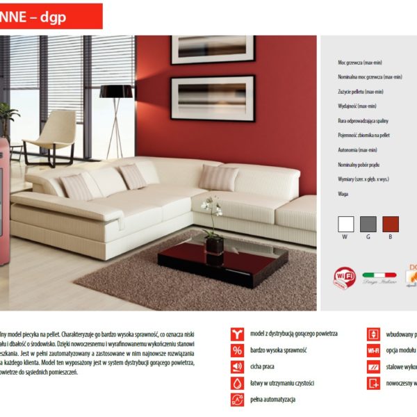 • Piece na pelet z dystrybucją gorącego powietrza DGP