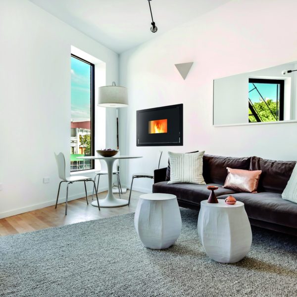 Piece na pellet z płaszczem wodnym wytwarzają ciepłą wodę do ogrzewania a także użytku sanitarnego oraz ogrzewają pomieszczenie ciepłym powietrzem. Są przystosowane do różnego rodzaju wnętrz, dzięki 2 rodzajom obudowy: ceramicznej i stalowej.